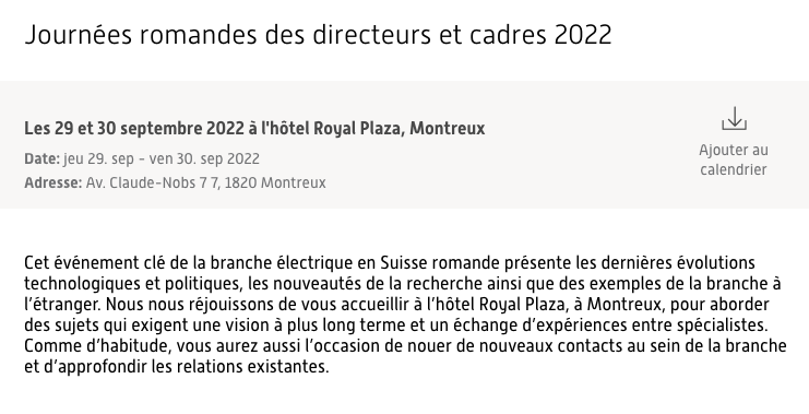 Romandie | Journées romandes des directeurs et cadres 2022 de la branche électrique en Suisse romande.
